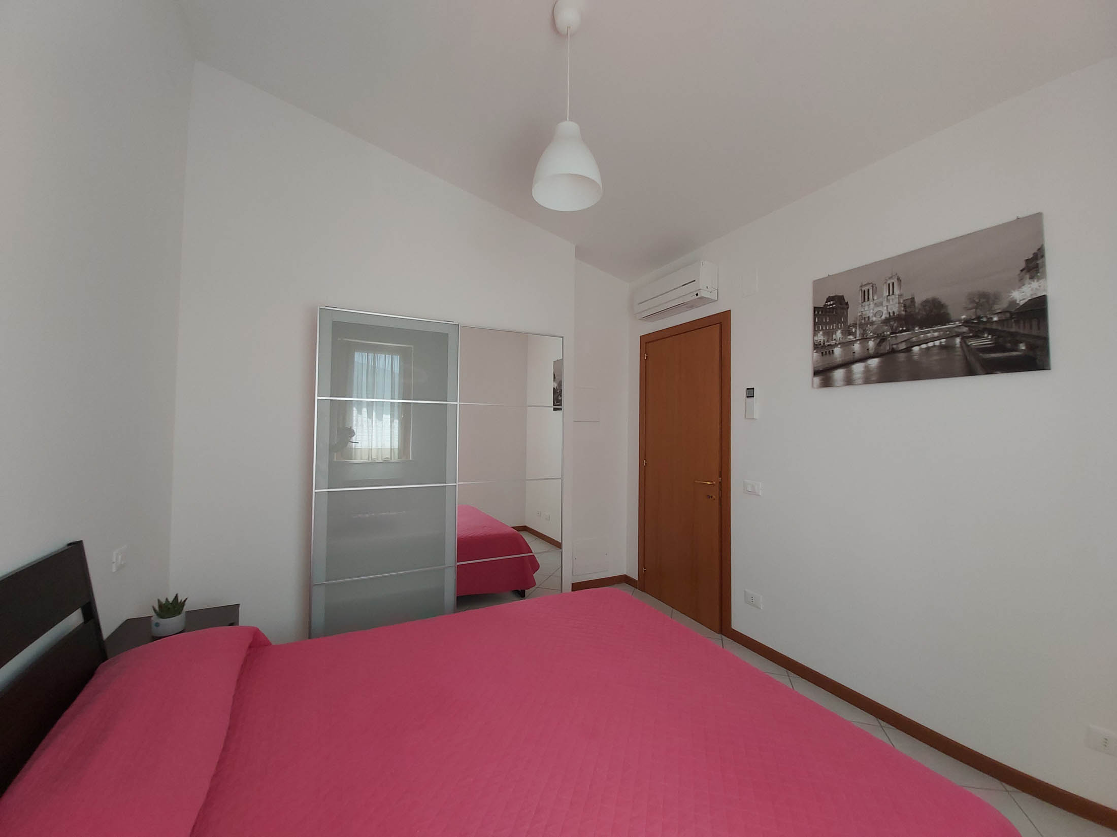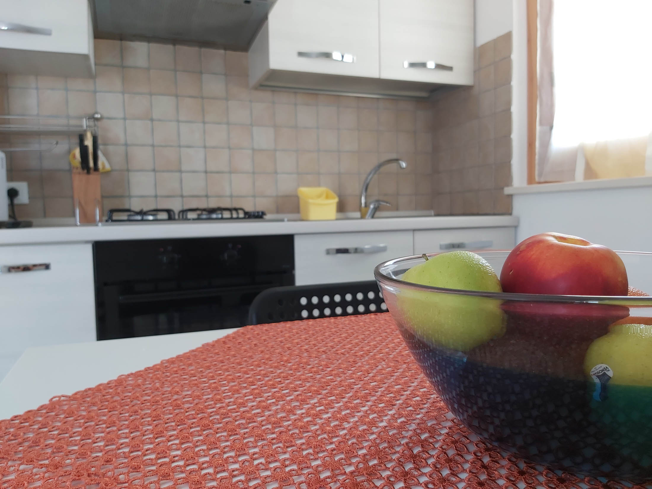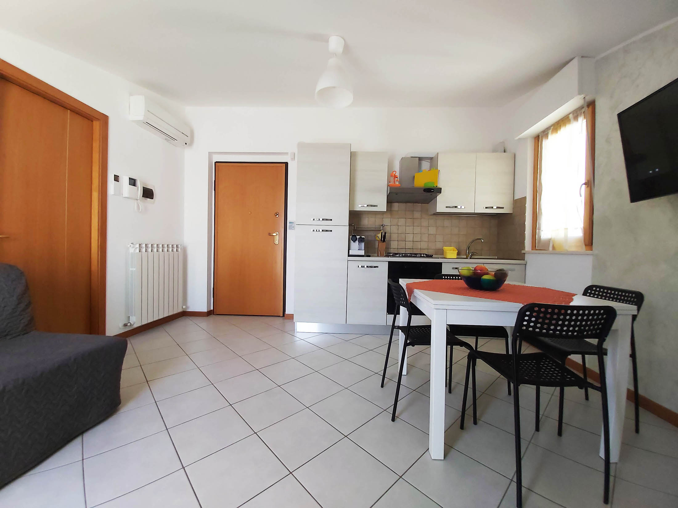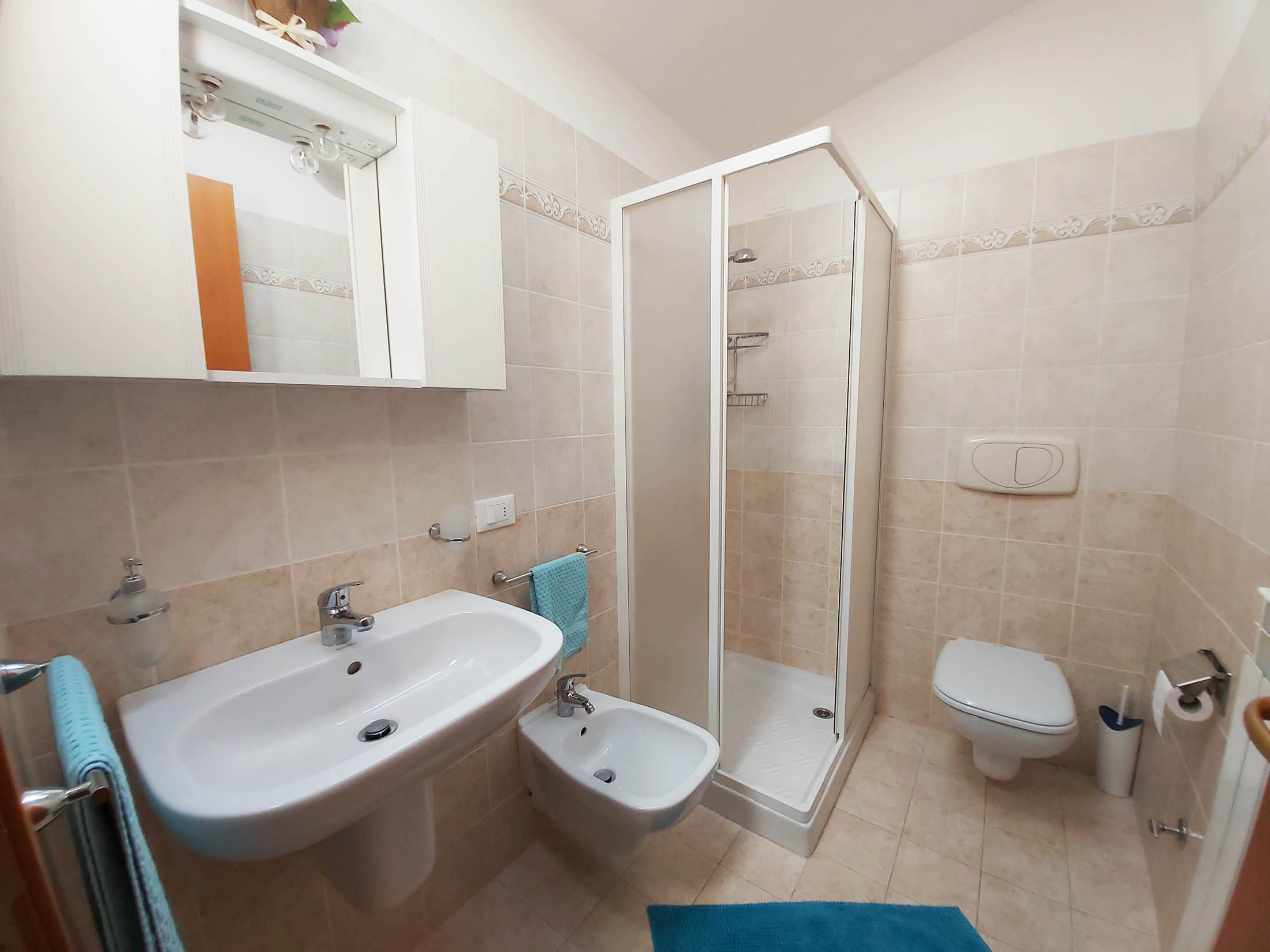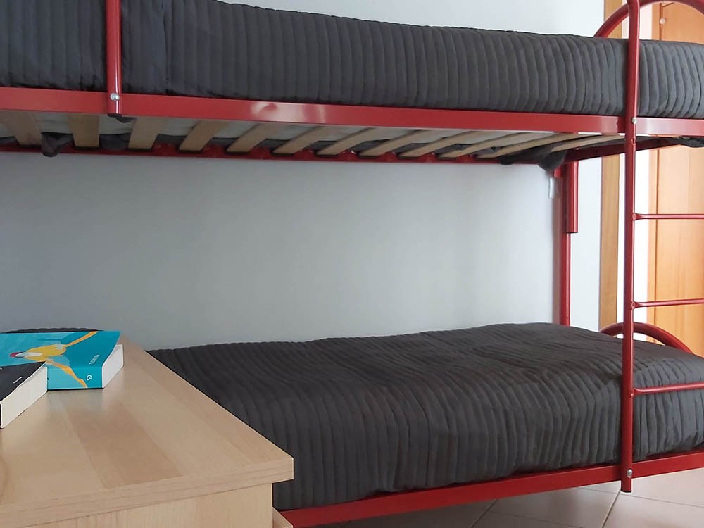 Si tratta di un trilocale di circa 60 mq, con terrazza vista mare attrezzata con tavolo e sedie. L’appartamento dispone di cucina con divano letto singolo, 1 bagno con doccia, una camera matrimoniale ed una cameretta con letto a castello. La cucina è dotata di forno a microonde, forno tradizionale, frigorifero e freezer e macchinetta per caffè con capsule Nespresso o similari.